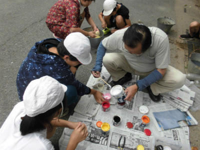 去年の先輩が描いた絵柄にも色を塗り重ね、きれいにしています。