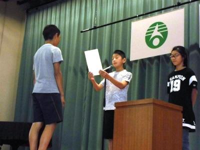 クイズに正解したグループの代表、無言清掃を実行していた児童の表彰がありました。