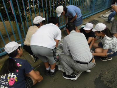 学校応援団の方々が午前中から、子どもたちがスムーズに行えるように下準備をしていただきました。