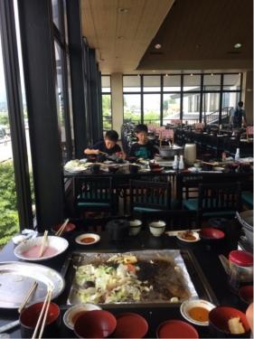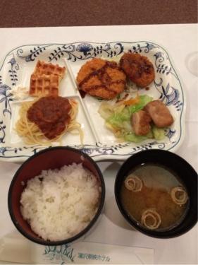 ホテル4階の大広間で、美味しくいただいています。