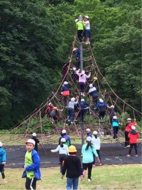 アスレチックで遊びました。自由時間に子どもたちは生き生き❗️午後のお天気が少し心配なので、この後の行動を考えいます。