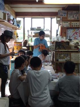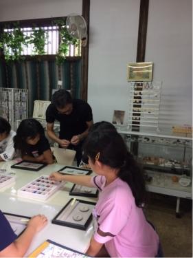 体験活動が始まりました、癒しとは、アクセサリーを作る家です。各体験の家には、教えてくださる方がいらっしゃいます。熱心に活動している子どもたちです。