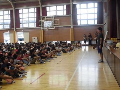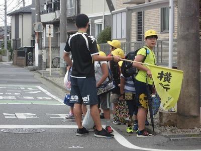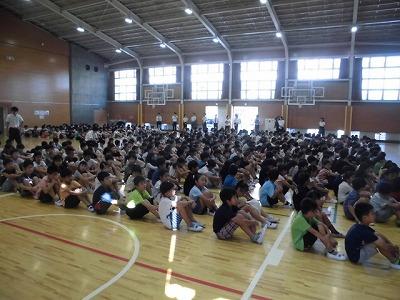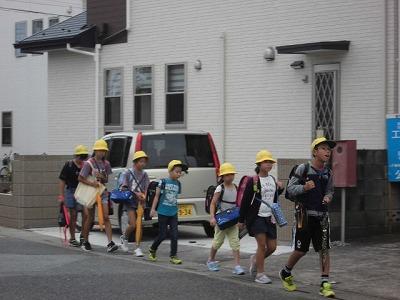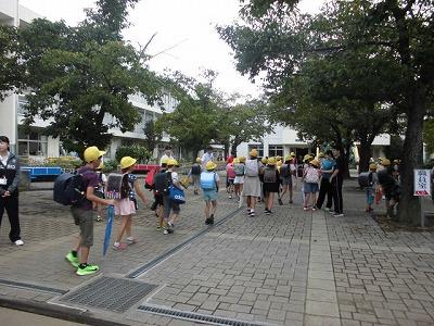 一斉下校では、通学班ごとに約束を確認しました。暑さ対策のため、地区ごとに教室や体育館に集まっての一斉下校を実施しています。