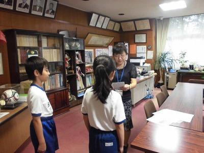 春日部市の市民憲章を考える会議に出席した5年生の子どもたちです。夏休みの土曜日のことでした。感謝状が届いたので、校長室で渡しました。