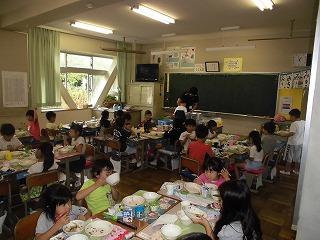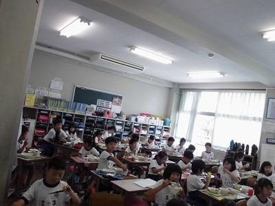 2年生の教室から食べる量を調節して、よく噛み食べているところです。