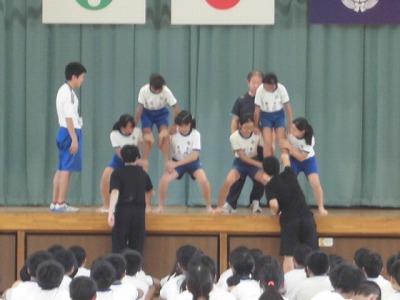 6年生 組体操 安全に気を付けながら、慎重にやり方を確認しています。
