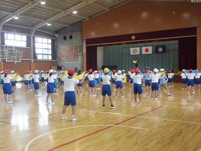 今朝は校庭に水たまりが残っていたため、体育館で「校歌」と「運動会の歌」を練習しました。