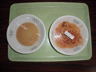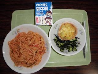 9月10日(火)の給食は、スパゲティナポリタン、さつまいものタルト、枝豆とひじきのサラダでした。除去食は粉チーズ抜きのスパゲティナポリタンでした。