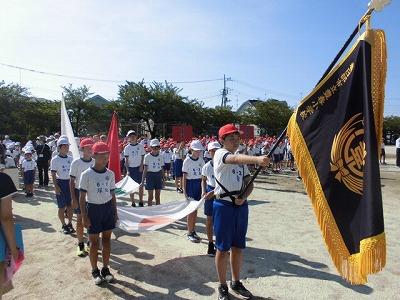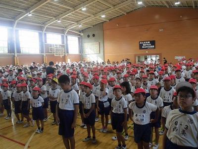 開会式練習を行いました。全校児童の一人一人が主役です。高学年児童の活躍は、なお一層輝きます。朝8時半から9時10分ごろまで集中して行いました。
