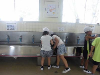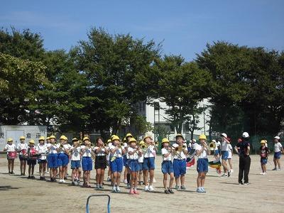 金管バンドクラブ、バトンクラブの子どもたちは、昼休みにも練習を行いました。暑さが厳しいため、15分だけ外で集中して練習し、クーラーで体を冷やしてから掃除に向かった子どもたちです。