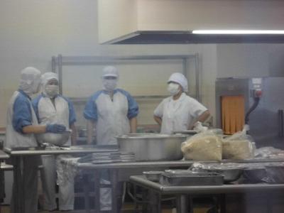 風雨の強い中、早い時刻に学校に到着した調理員さんです。いつも通りの時間から給食をつくり始めてくださいました。ありがとうございました。