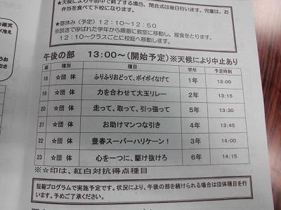 明日の運動会 天気に対応したプログラムです。午後の実施判断は明日になりますが、ご了承ください。