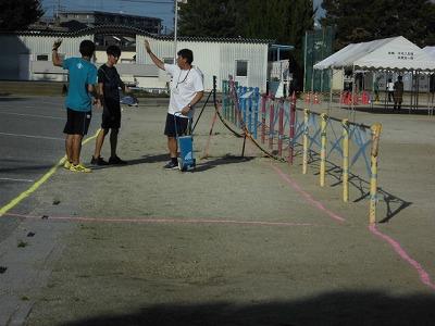 本日は天候の予測をすることが難しいため、午前中のプログラムのみ実施することにしました。皆様にご協力をいただきながら、準備も整い、やる気いっぱいの高学年児童が校庭にそろったところです。