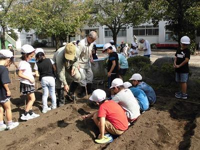 2年生は本日、午前中は豊春駅の見学に行き、午後は秋蒔きの野菜の種をまきました。どちらの学習でも、地域の方にお世話になりました。