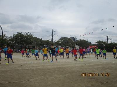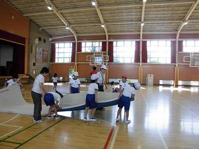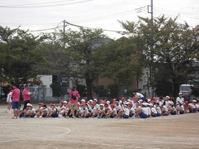 本日は天候の予測をすることが難しいため、午前中のプログラムのみ実施することにしました。皆様にご協力をいただきながら、準備も整い、やる気いっぱいの高学年児童が校庭にそろったところです。