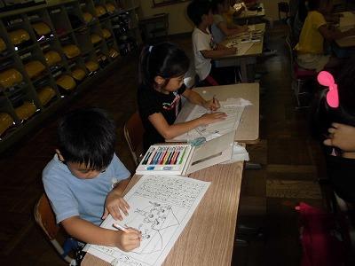 運動会の思い出を絵や文にまとめています。1年生もしっかり描けるようになっています。