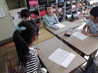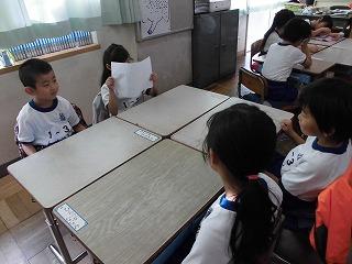 3年生は、学校生活で楽しいことを書いて、みんなと伝え合いをしています。