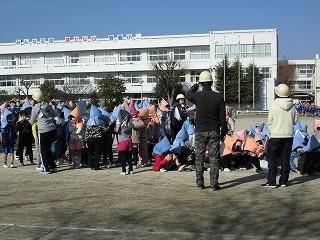 「おさない、かけない、喋らない、戻らない(火に)近づかない」の約束を守りながら、黙って訓練を行うことができました。「命を守る訓練なので、一回で指示を聞くこと」「喋る人がいると、先生方が誰かが怪我をしたのではないかと思うからやめること」「誰かが駆け足をして転ぶと、後から来る人が倒れて危険だから駆け足をしないこと」等、約束の確認も行いました。おうちの方もお子様に確認をしていただくようお願いいたします。
