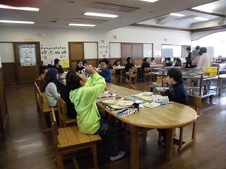 きょうはランチルームで1月生まれの皆さんのお誕生給食でした。先生方も自分の誕生月に仲間入りします。