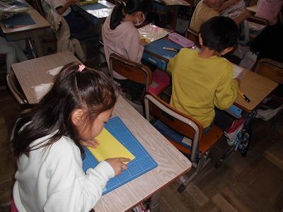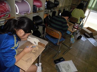 4年生の版画。上手に彫れています。これから掘り進みが楽しみです。