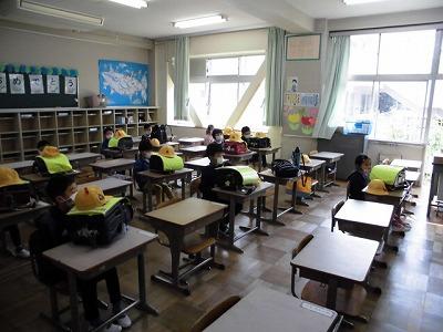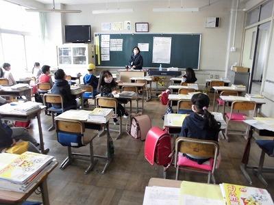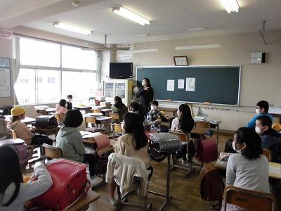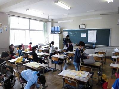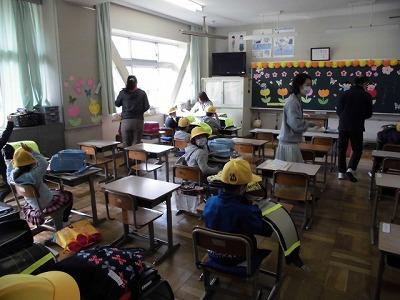 5・6年生は、落ち着いた雰囲気の中、しっかりと先生の話を聞いていました。荷物の整理もすばやくすばらしい行動がとれていました。さすがです!