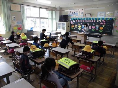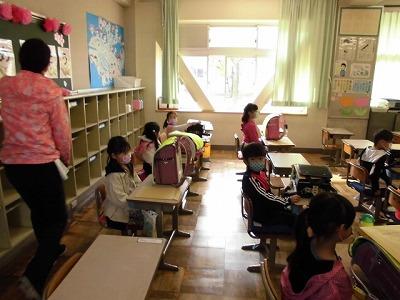 3年生は、やってきた宿題を確認し、机の上においてあるものをランドセルにつめて素早い行動がとれました。