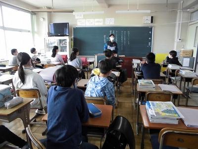 6年生の様子です。みなさん席にしっかりついて先生の話をよく聞いていました。すばらしいですね。