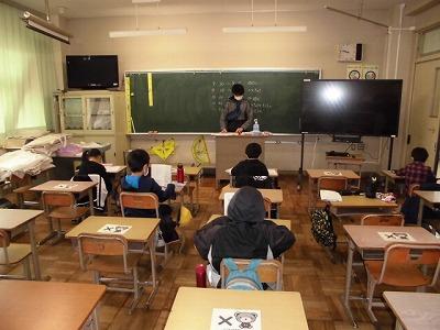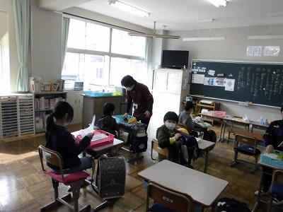 新型コロナウイルス感染拡大防止のため、友達と話することもほとんどできず、5月7日までの課題の確認と、教科書の配付、そしてプリント配付を行いました。子どもたちの登校にあたり、学校でも、すべての窓を全開にすること、事前と消毒と、児童が帰った後の消毒、児童が登校した時のアルコール消毒、マスクの準備など、学校が今できる最善のことを職員みんなで考えながら子供たちを迎えました。短い間でしたが、学校に子どもたちの声が聞こえとても充実した時間となりました。