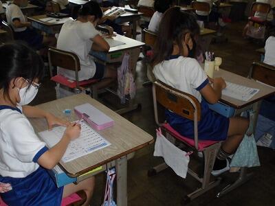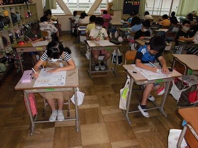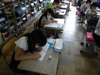 4~6年生は、埼玉県学力・学習状況調査を3時間おこないました。算数、国語、質問紙で、小学校4年生から中学3年生の6年間の、個人の伸びを調べていきます。また、この調査結果を基に、どの力を伸ばしていかなければならないのかを分析し、学校教育に生かして行くためのテストです。子ども達は土曜日にもかかわらず一生懸命がんばりました。