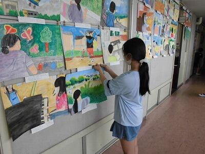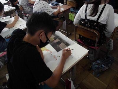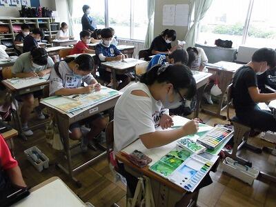 6年生の図工の作品鑑賞会では、友達の作品を見て感想を書いています。
