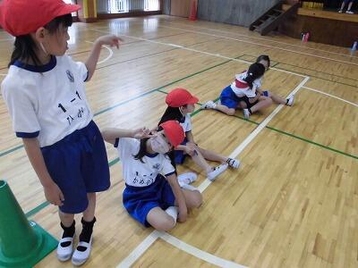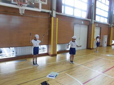 体育の授業では、リレーのバトン練習やなわとび練習などで汗を流し、体力向上を図ることができています。
