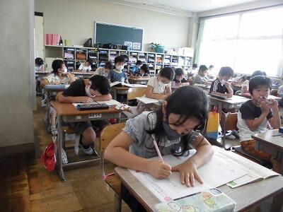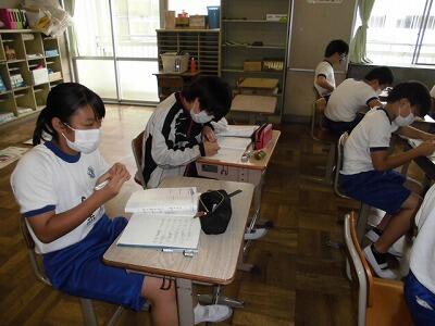 5,6年生は、集中力がちがいます。しっかりと集中して学習に取り組んでいます。