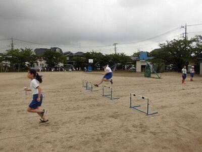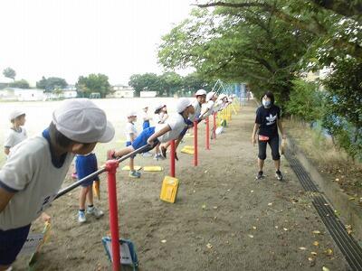 6年生のハードル走、2年生の鉄棒など元気いっぱい体力向上を図っています。