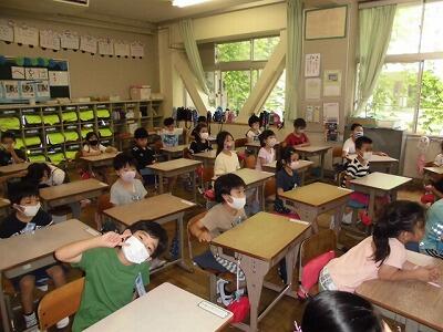 学校再開から1ヶ月が過ぎ、学校での新しい生活様式にも子ども達は慣れてきています。毎日のマスク着用、検温、手洗い、うがいの徹底など、がんばってみんなが行っています。