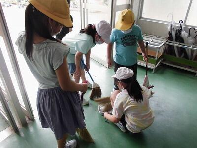 今豊春小では、掃除は先生が行っていますが、気づいた子ども達が昇降口をきれいにしてくれました。