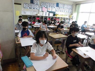 長雨が続いていますが、豊春っ子は毎日元気です。書写や英語なども頑張っています。また、今日は図工の仕上げをしているクラスも多くありました。