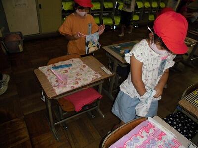 家庭科の裁縫の仕上げもがんばっています。