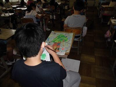 図工の絵も、もうすぐ仕上げ!みんなていねいにがんばって描いています。
