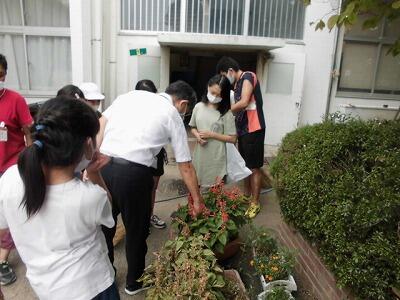 朝の水やりの様子です。678組さんが毎日の日課で行っています。
