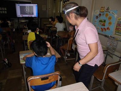 学習は、主体的な取り組みが見られます。担任の先生が、わからない子のそばにいき個別の指導を行っています。