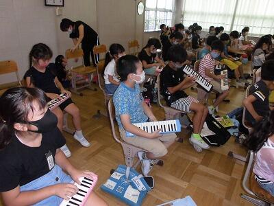 音楽の授業もピアニカや手拍子を使ってリズムをとり、飛沫対策を行いながら授業に取り組んでいます。