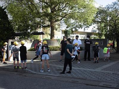 ふれあい体験の大学生に負けじと生活安全委員会の児童達も大きな声であいさつをすることができました。