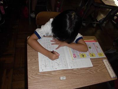 算数の問題が終わり、自分で挑戦したいプリントを選んでやっていきます。自分の力に合わせてプリントを選んで取り組んでいく主体的な学習の様子です。