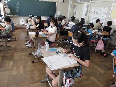 テストの時間。みんな真剣に問題に取り組んでいます。