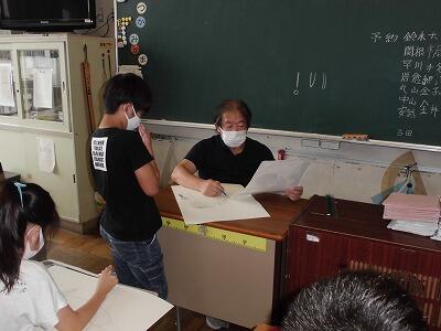 教育実習生との打ち合わせ。先生の卵にいろいろな技を伝授!