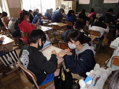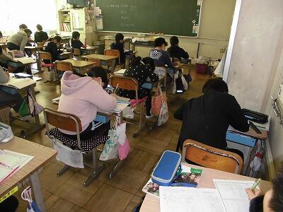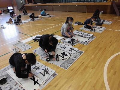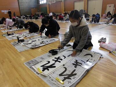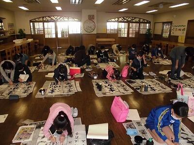 6年生は、小学校最後の競書会です。しっかり練習をし、この日のために頑張っていました。一字一字きちんとにじまないように拭き取りながら、誰もしゃべらない緊張感の中で作品に一生懸命取り組んでいました。
