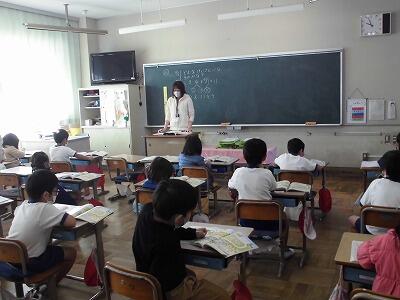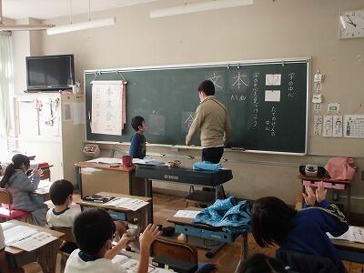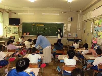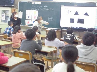 外国語の時間は、前に出て英語の問題に挑戦!みんなが積極的に答えていました。