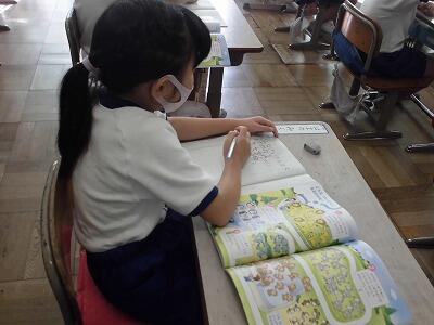静かに集中してがんばっていました。とても静かな雰囲気の中、一番の字が書けた子が多くいました。