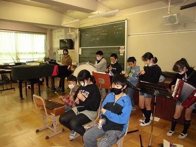 感染症対策から、特別教室4,5教室に分かれて練習していました。