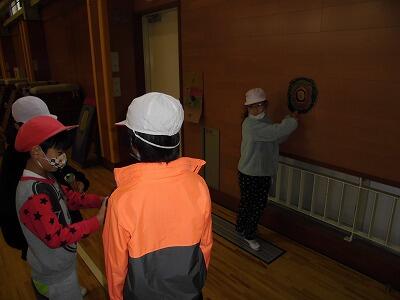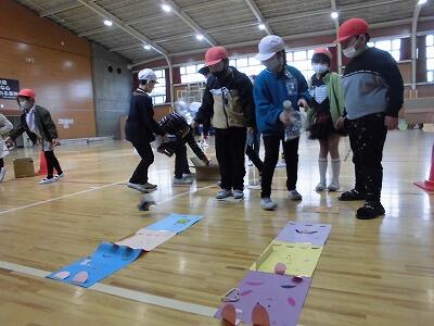 本日2・3校時に、2年生が体育館で「遊びランド」を開催しました。生活科の時間に1年生との交流のために、2年生がいろいろな遊びやゲームを作り、1年生に遊んでもらう会です。今日はその予行ということで、2年生の中で交代で遊びやゲームを楽しみました。